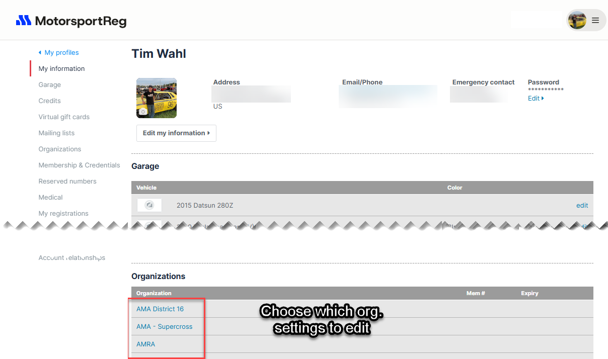 - My Account → choose the profile you wish to opt-in, click on the name and picture
